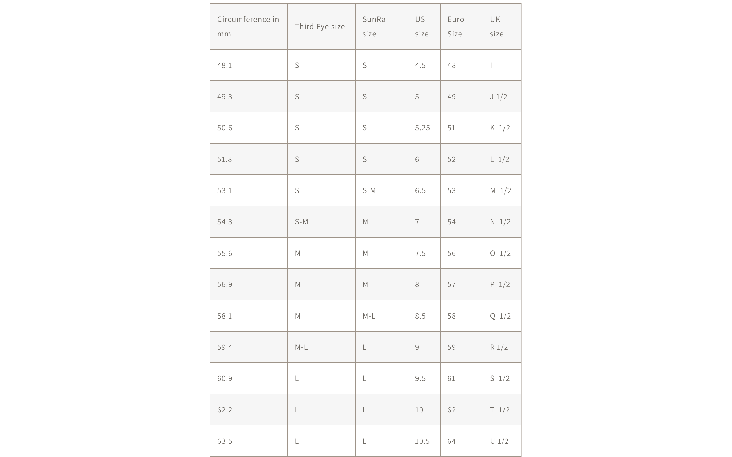 Algunos de nuestros anillos tienen forma de U (con la parte superior plana), lo que los hace más flexibles en cuanto a tallas. Suelen estar disponibles en tres tallas, cada una compatible con una amplia gama de tallas. Puedes encontrar las equivalencias en la descripción del producto.
